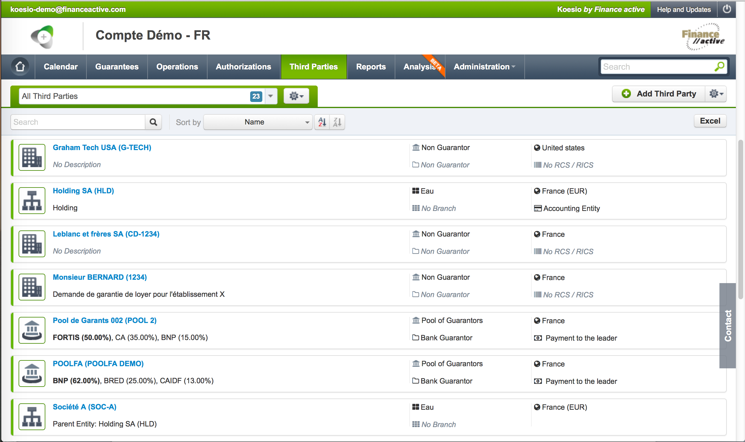 The “Third parties” page is adopting the look of the “Guarantees” page. This new design comes with the following advantages: