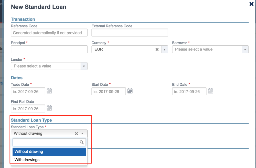 Available as a beta feature, the system now supports 2 types of standard loans. When selecting “New Standard Loan” in his/her portfolio, the user can now has 2 options :