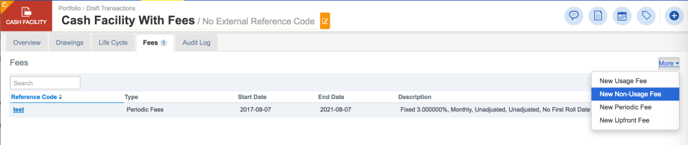 Fairways Debt can now support additional fees on Cash Facilities, such as periodic Fees and non usage fees.