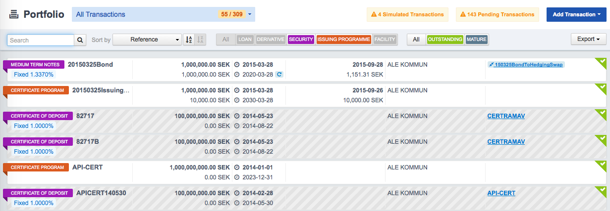 Fairways Debt now allows to split issuing programs for a more detailed overview of your portfolio. Thanks to this brand new feature, you will be able to display separately all the bonds and certificates, and to filter them to easily access the required information and better analyze the transactions issued as a part of a program.